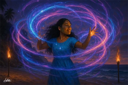 A powerful sorceress and Hawaiian kahuna whose life ended in 1731 when she was sacrificed to a volcano after her village was deceived by a demon. Preserved intact within the Abyss, she developed extraordinary abilities to bridge realms across space and time. Aolani would aid Veera Sarin and the forces of Light by opening portals between worlds and helping banish major agents of the Dark.