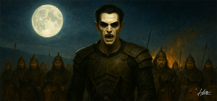 One night, as he fed on peasants in a straw hut, streaks of light slashed the dark, moving across the thatch, and shouts rose outside. He slipped to the edge of the village and watched them come, nomadic riders, sackcloth and fur layered beneath piecemeal armor, metal helms gleaming like cold moons. They hit like saddled lightning, fast, precise, sacking and burning, cutting down the slow and the stubborn without hesitation. The raid was brutal, quick, and gone before the night caught its breath.