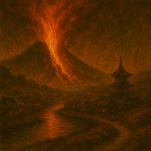 When news reached him of Mount Unzen’s eruption in Nagasaki, he believed fate was calling him to service once more. Ren rode through ash-filled roads, past refugees and smoldering fields, until he reached the local Shogun’s encampment.
