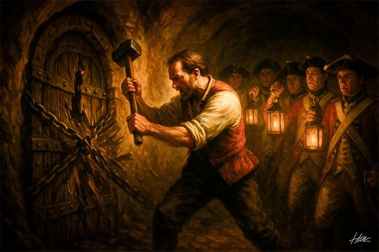 For days a contingent of Redcoats worked to force their way into the iron barrier...but when the door finally gave way, the soldiers stepped into a churning nightmare -- finding themselves in a starving nest of warring bloodsuckers.