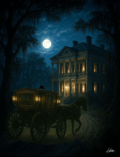 Cicadas sang their endless dirge in the trees as Royce climbed from the carriage at the end of the long gravel drive. Lanterns lined the veranda like patient sentries, their glow catching the polish of his boots as he approached.
