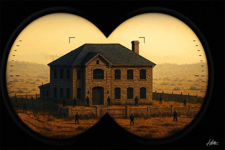 Bernard and his daughter, Flora Mae, moved silently. They watched from a distance, studying windows, counting bodies, marking exits. Then, visual confirmation. Spotting Royce himself…This was it, Bernard's best chance to fulfill his father’s quest for revenge.