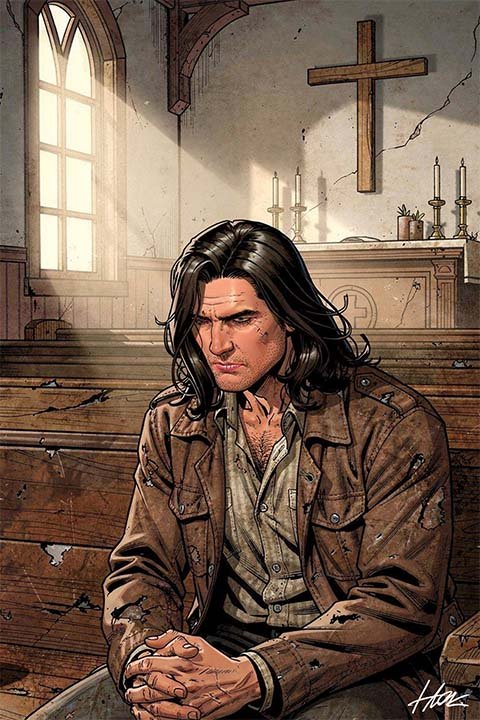 Inside, Uti found Sam. Long black hair, a face carved with old scars. His age and heritage were impossible to place, vague, indistinct, as if he wasn’t an amalgam of a few ancestries, but the origin of many. And though not a man of faith, Sam spent his days alone in the church, contemplating, perhaps even hoping for forgiveness of sins of his past.