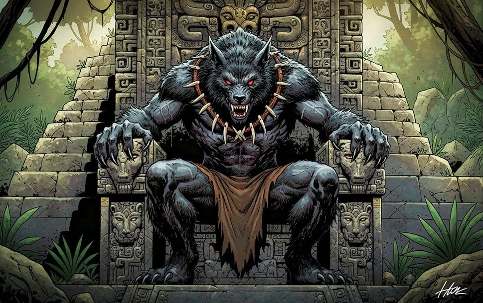 Cuetlachtli transformed into a werewolf slaughtering the King for all to see. Remaining in that form, he’d claim the throne. Thus began the reign of, the Tlatoani Mocuitlachnehnequi, which was Nahuatl for "Our ruler resembles a wolf”.