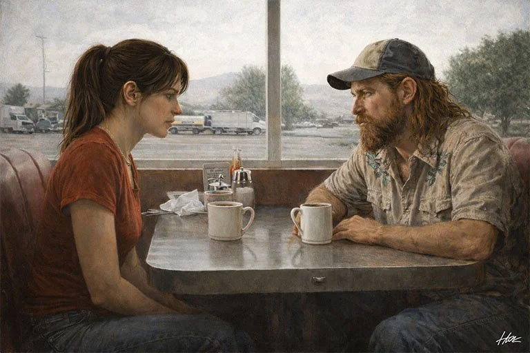 It’d been years since he’d encountered another werewolf. So when Sara stepped into the café, she immediately drew his attention. Neither needed words to recognize the other. Among the low hum of human conversation, something passed between them, an understanding shared in posture, in scent, in the way each watched the room. Sara asked where he was headed, and if she could ride along.