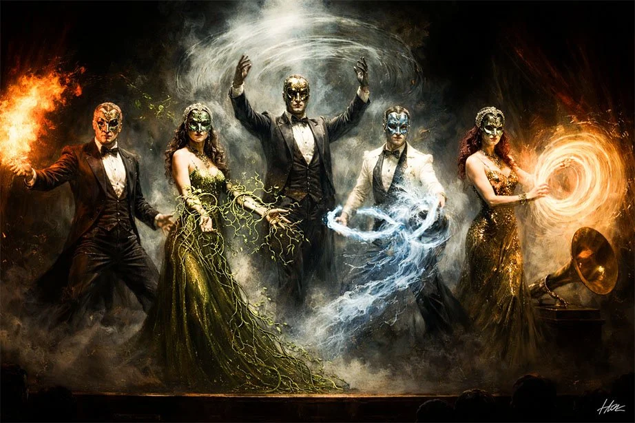 In 1925, the five members reemerged in Mexico as Los Arraigados -- The Rooted Ones, a traveling magic act, appearing in masks, wielding their supernatural abilities.