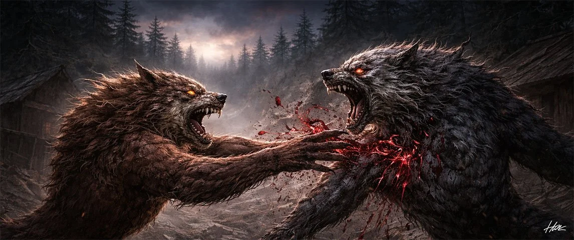 As she transformed, Crowley shifted too. With the elements falling silent, there was only teeth and claws left to finish the fight. Two cursed bodies collided in the ruins of the settlement. Sara was stronger, focused -- but Crowley was relentless, fighting without fear or future. In the end, she didn’t overpower him, she outlasted him. And when she dealt the final blow, it wasn’t triumph that filled the air, but release, as the PURE LIGHT within him collapsed, imploding with a final mercy...but as Crowley fell lifeless, Death appeared.
